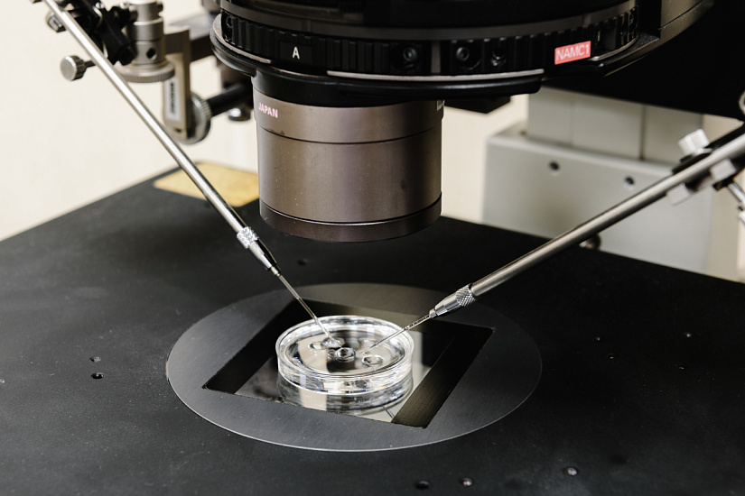- Оплодотворение: инъекция отобранного сперматозоида в цитоплазму ооцита (ИКСИ); помещение оплодотворенных ооцитов в специализированную среду